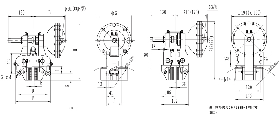 CQPL38B型技術(shù)參數(shù)見(jiàn)表七,結(jié)構(gòu)及外形尺寸見(jiàn)圖二