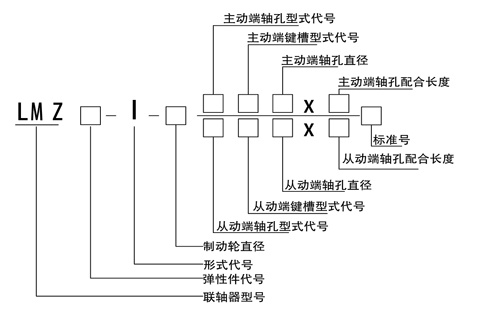 注: 1 、重量、轉(zhuǎn)動慣量是按材料為鑄鋼按L推薦、最小軸孔計算的近似值。 2、帶"*"號軸孔直徑可用于"Z" 型軸孔。3 、a 、b為二種彈性件材料的硬度代號。