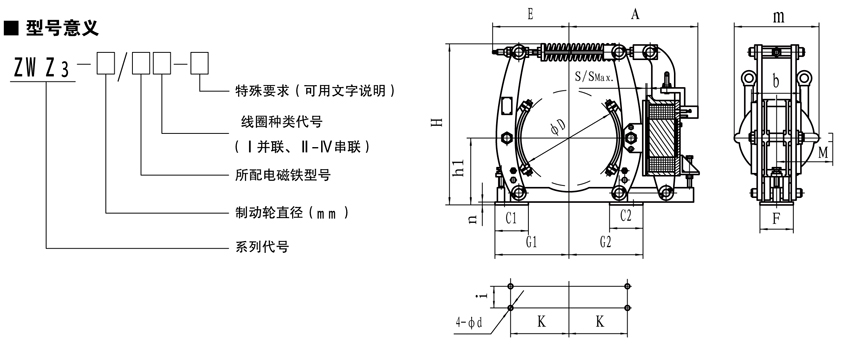 制動(dòng)器安裝尺寸和制動(dòng)力矩參數(shù)符合:GB6334-86標(biāo)準(zhǔn),技術(shù)要求符合JB/T7685-2006標(biāo)準(zhǔn)。